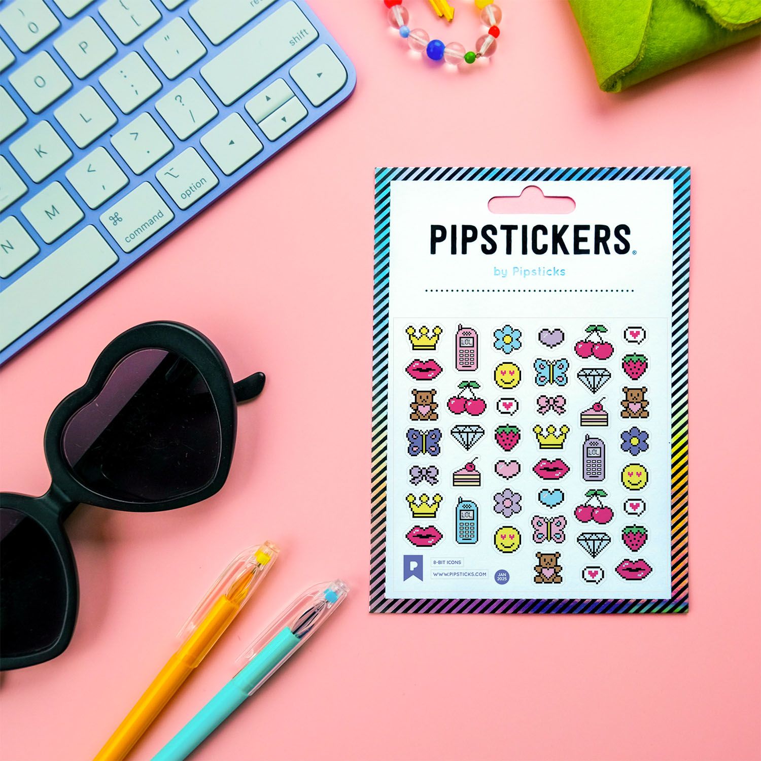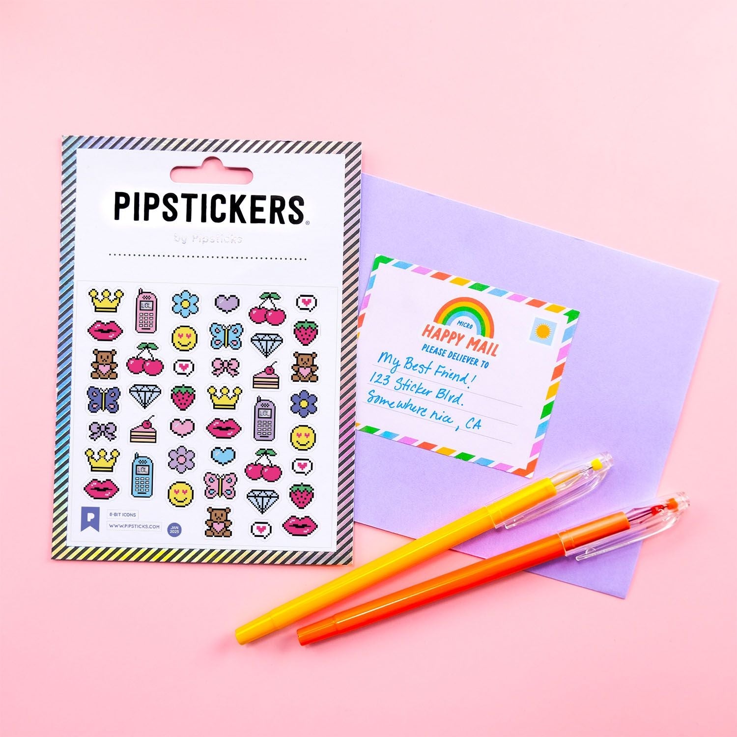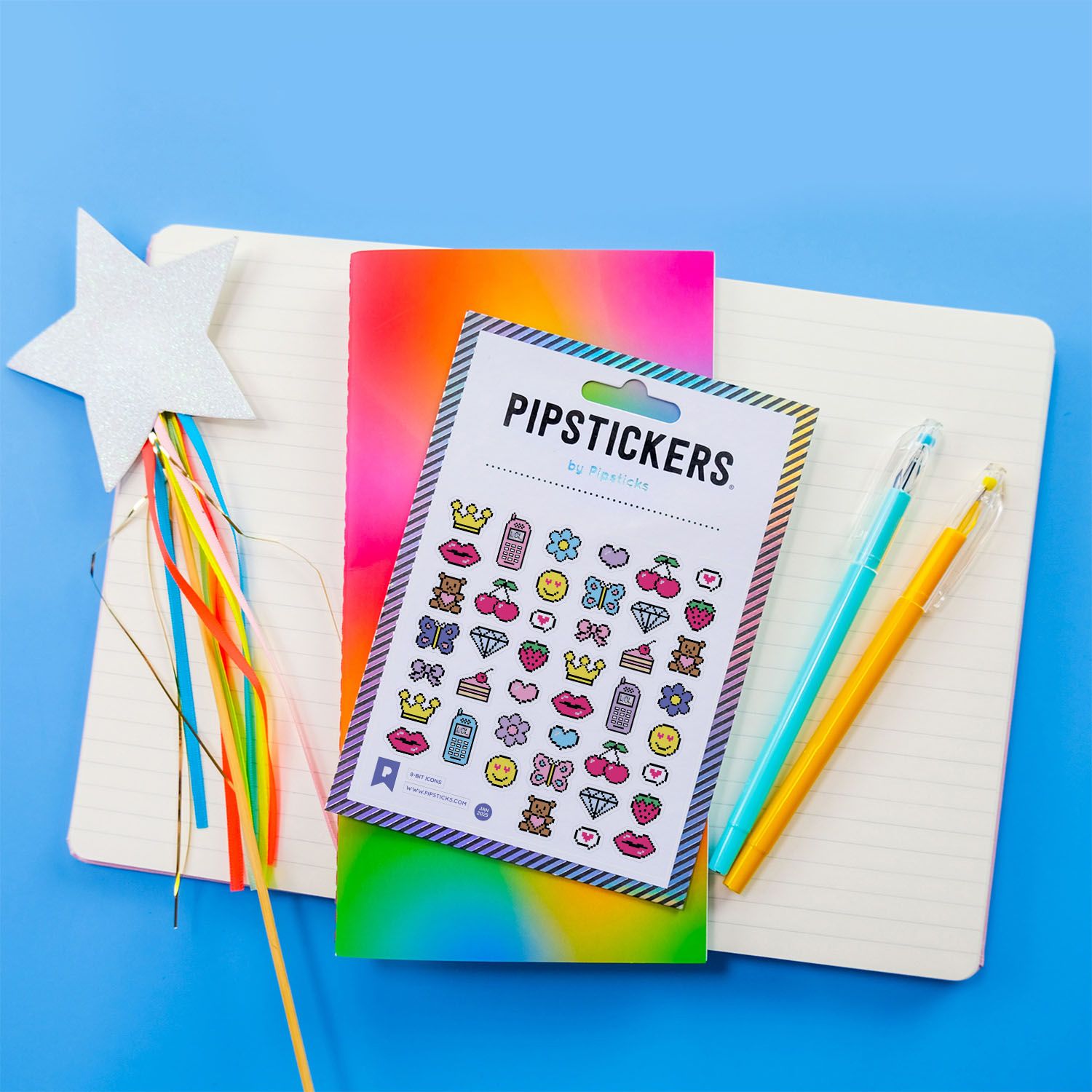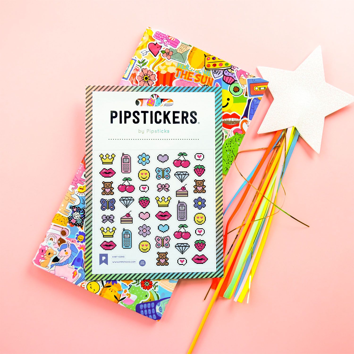 Includes one 4" x 4" sheet of 8-Bit Icons PipStickers and includes the Pipsticks manifesto.