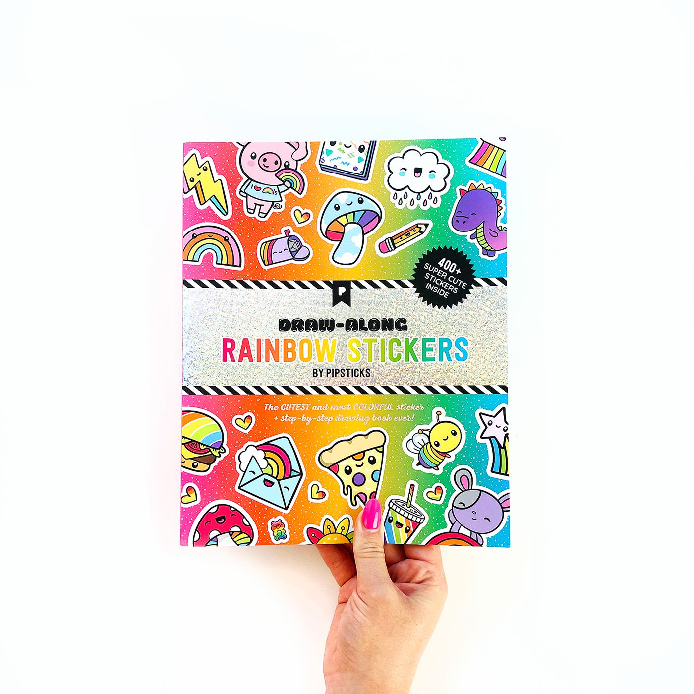 This cute COLORFUL sticker book has it all. Things to color! Things to draw! Things to sticker! Packed with over 400 of the CUTEST kawaii stickers, you'll find loads of rainbow themed designs inside. From mushrooms and snail mail to junk food and dinosaurs, get ready to let your imagination run wild!