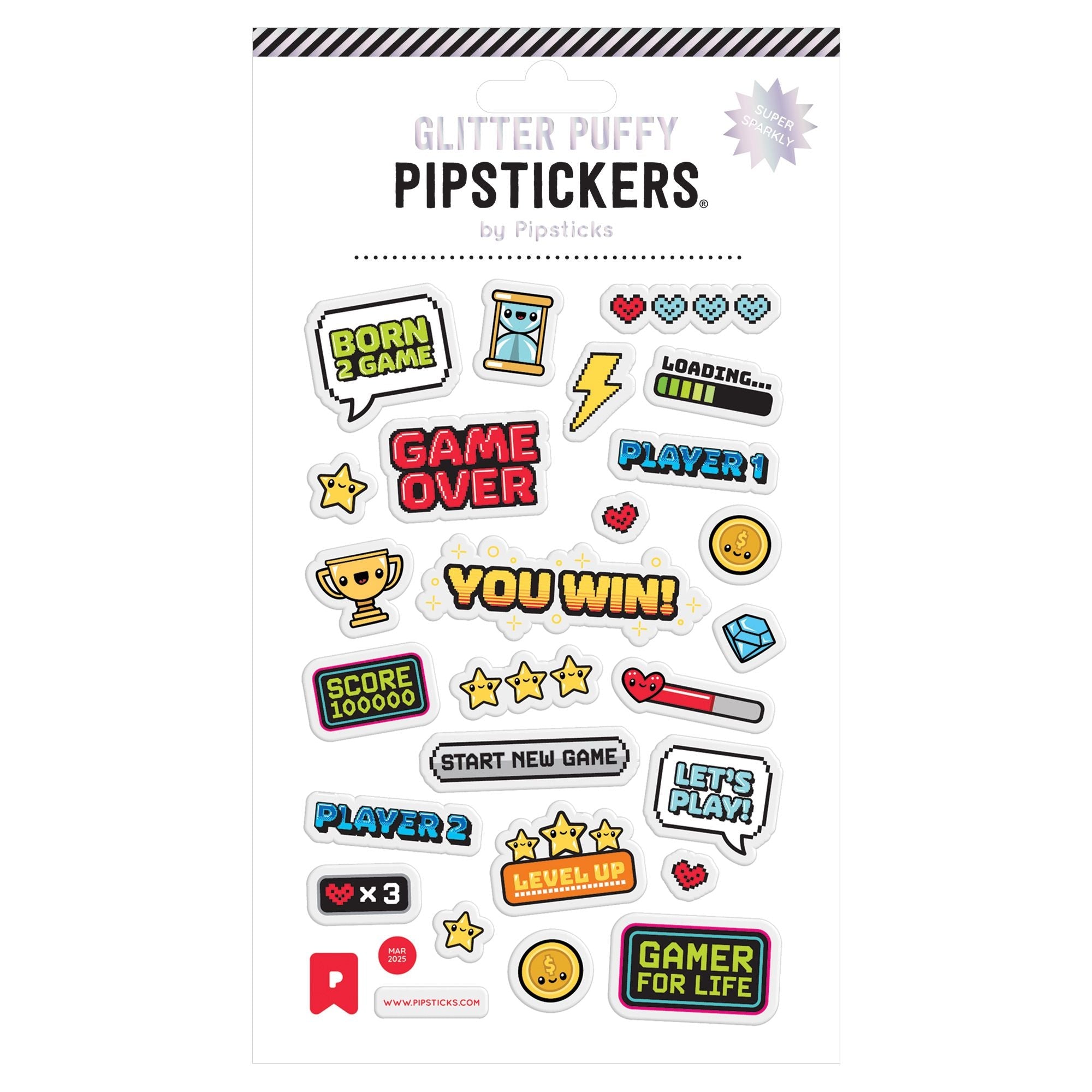 Includes one Puffy Gamer Glossary PipSticker sheet with glitter accents.