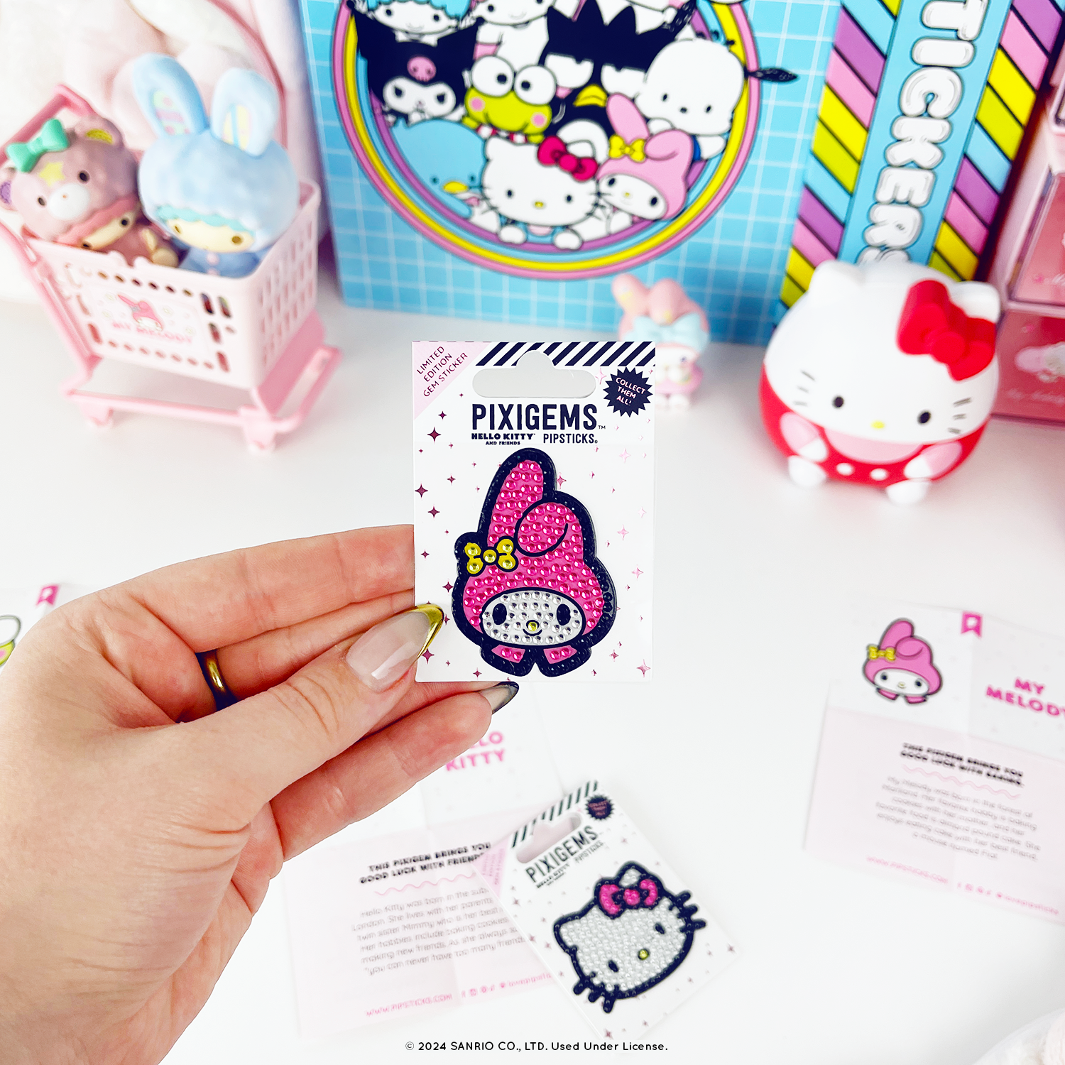 Includes one 2" x 2" My Melody Pixigem sticker & collectors card to uncover it's special power.