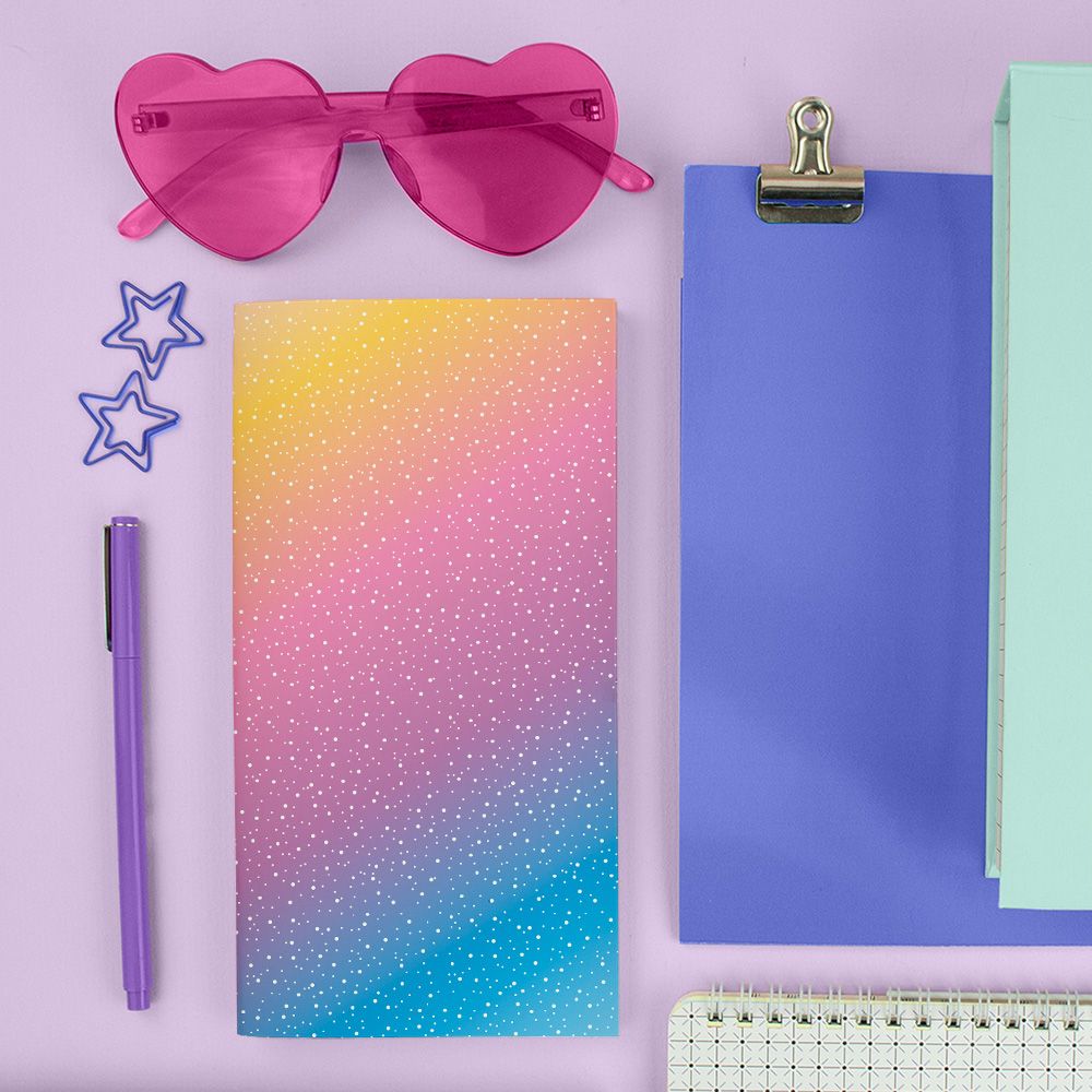 Includes one 4.33" x 8.25" Ombre Dreams Traveler Notebook with 48 pages.